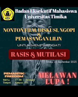Dikusi yang sangat serius dengan Topik Rasis, namun waktu pun berjalan sekitar jam 20;00 malam. Diskusi pun dilanjutakan dengan Pemutara Film Mutilasi Timika yang diproduksi oleh SKPKC Fransiskan Papua pada Agustus 2023. Sutradara: Yokbeth Felle & Bernard Koten Durasi: 43:02 Menit Produksi: SKPKC Fransiskan Papua, Tahun Produksi: Agustus 2023.